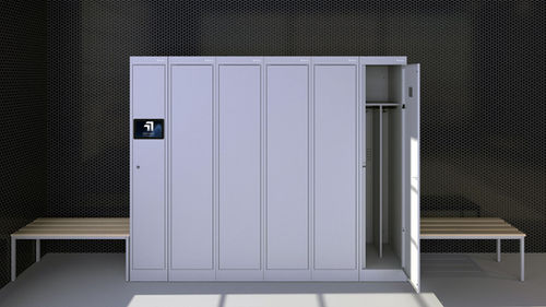 Użytkownik otwiera przypisaną szafkę za pomocą karty RFID, breloka lub telefonu, a system automatycznie rejestruje każde otwarcie i zamknięcie.
